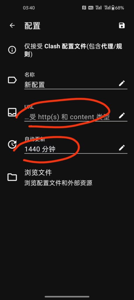 现在位置: 首页 / 机场订阅使用文档 / 正文 安卓手机使用教程(电视平板通用) 麻辣女兵 机场订阅使用文档 2024-07-05 34热度 0评论 第一步:下载软件并安装 下载clash meta中文版 第二步:打开app点击配置 第三步:打开配置中的+号,选择从URL导入配置 第四步:复制粘贴订阅的URL,自动更新可以设置成1440分钟更新一次,右上角保存 第五步:导入成功后反回点击启动即可,点击代理可以切换节点 如何手动更新订阅?