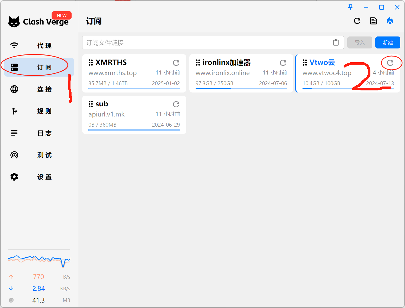 现在位置: 首页 / 机场订阅使用文档 / 正文 windows PC 客户端下载使用教程 麻辣女兵 机场订阅使用文档 2024-07-05 39热度 0评论 第一步:下载软件并安装 下载clash meta中文版 第二步:打开软件,打开系统代理,其他按需求设置 第三步:复制订阅链接,进入clash配置选项,在订阅文件链接处粘贴订阅链接点击导入 第四步:点击代理选择节点即可 如何手动更新订阅?